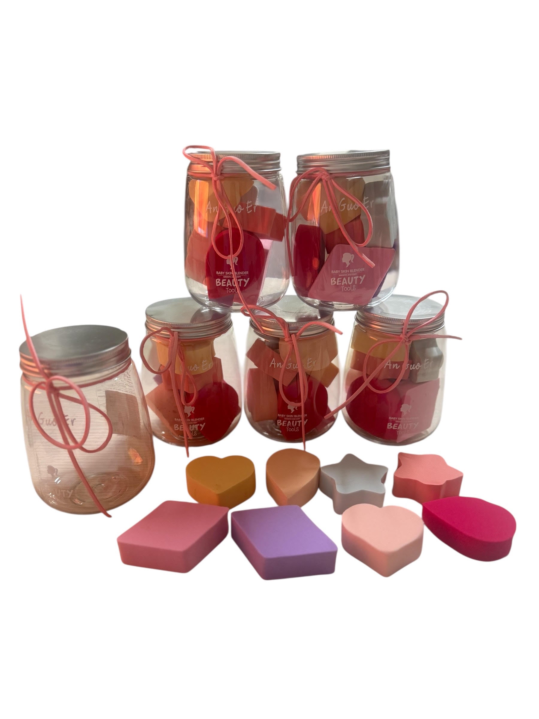 10 barattoli con 8 spugnette trucco ogni barattolo